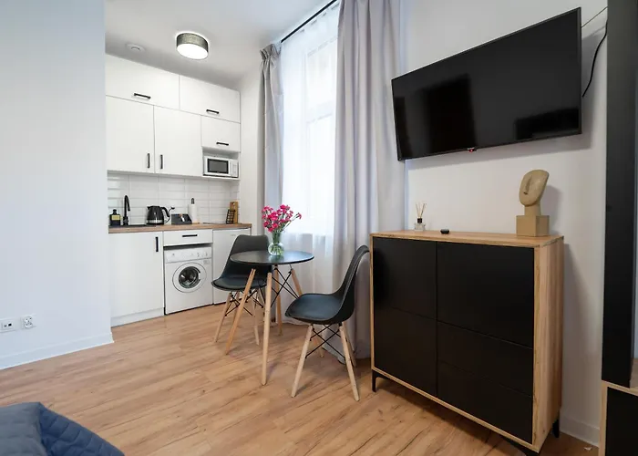 Il Apartamenty Slowackiego 16 Poznań si trova a circa 20 minuti a piedi dalla Piazza della città vecchia e offre Wi-Fi sia per motivi di lavoro che per svago.